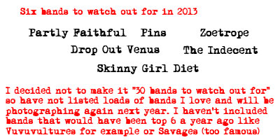 The Dogbones, Vuvuvultures, Slaves, Sisters, Big Deal, Wolf Alice, Candy Says......